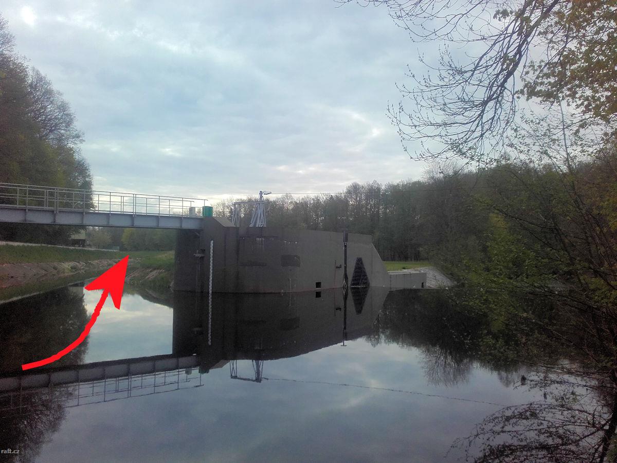 r.km 14,9 Hraditelný jez ve Zlíči - odbočit do přivaděče pro výstup u mostu ve Zlíči