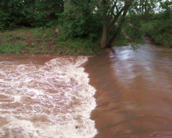 Stav po povodni - úsek od mostu na km 30,7 až po jez na km 14,9. při průtoku 12 kubíků. Jen jeden pa ...
