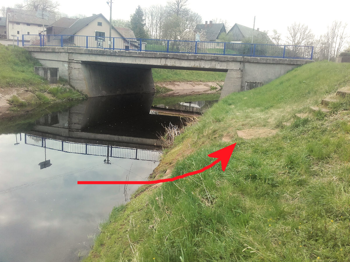 1 km vľavo a nasleduje za 100m most pešej nebo lávka