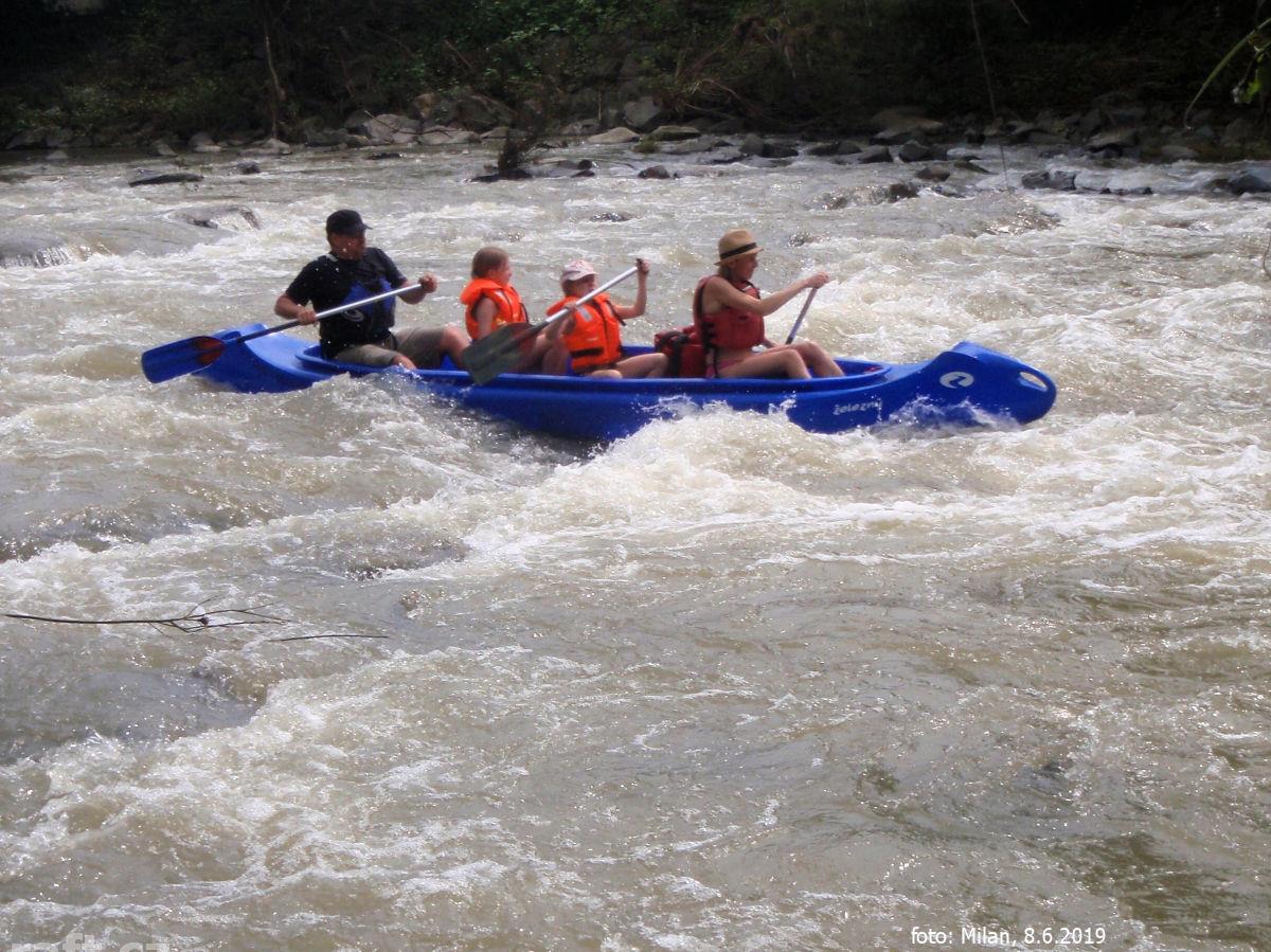 18.7.08 jsme sjížděli Bečvu při středním průtoku na raftu od soutoku Rožnovské a Vsetínské Bečvy.