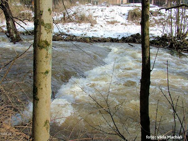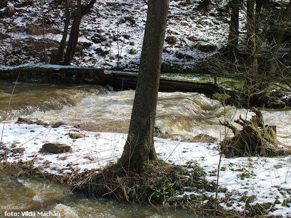 Bystřice 19.3.2005 vodočet v Hrubé Vodě 110cm, v Domašově pozor, ještě před prvním jezem je přes řek ...