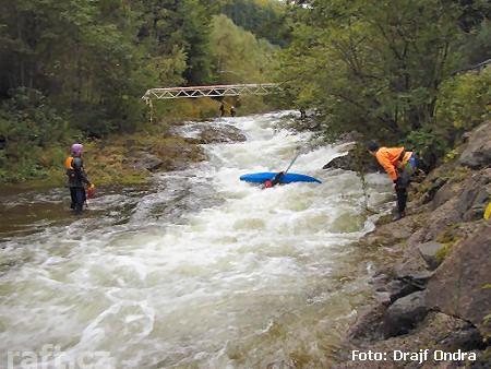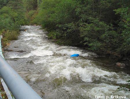Divoká Desná - splutí So 8.9.2007 okolo poledne. Podle vodočtu v Šumperku na Desné stav na hranici s ...