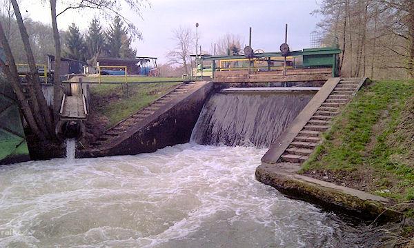 Umelé kanály Mlýnský náhon Moravy - hatě na rieke