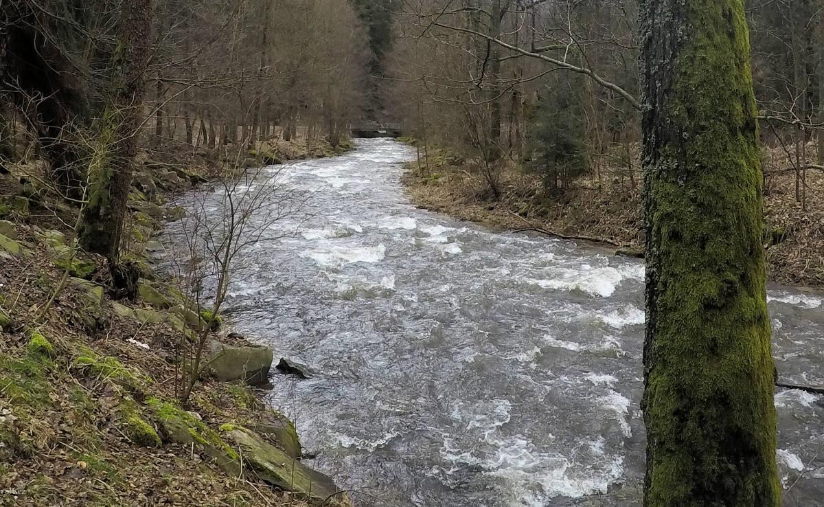 v useku Habrmannův mlyn - Postřelmov, cca 303 ř. km 2x spadeny strom přes celou řeku ...