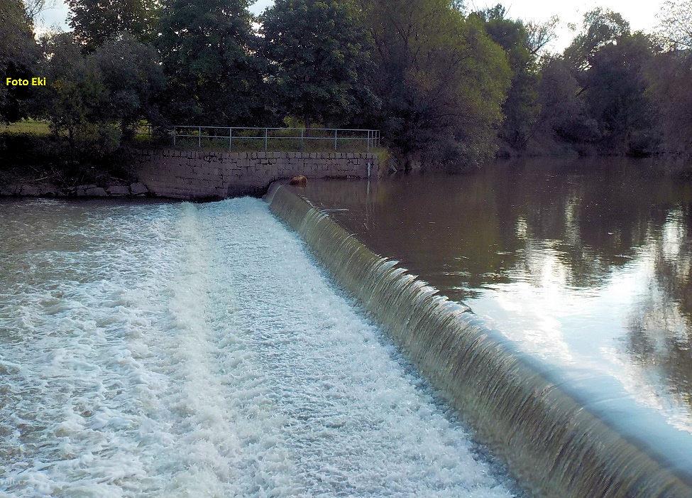 Cca 500 m pod jezem v Kunově je přes řeku natažený špatně viditelný drát - zcela bez označení (vprav ...