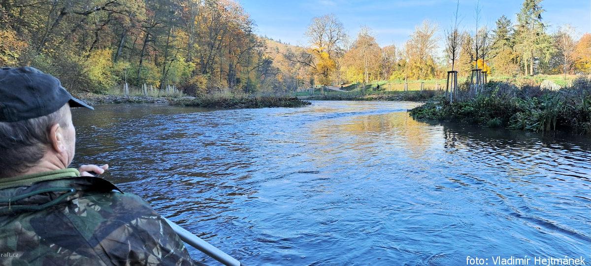 V dolním úseku, 3,5km pod jezem Březina, tedy v místě těsně za osadou Šárka kde řeka tvoří velký ost ...