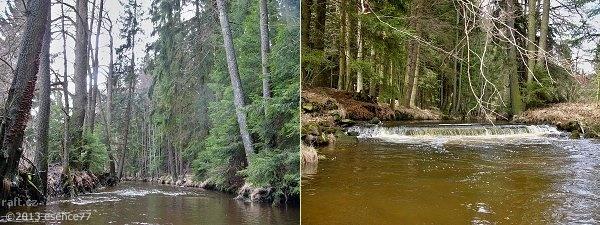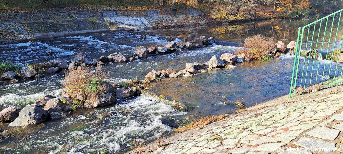 V dolním úseku, 3,5km pod jezem Březina, tedy v místě těsně za osadou Šárka kde řeka tvoří velký ost ...