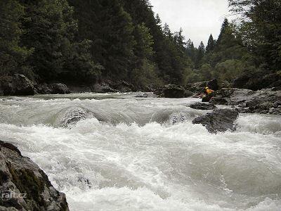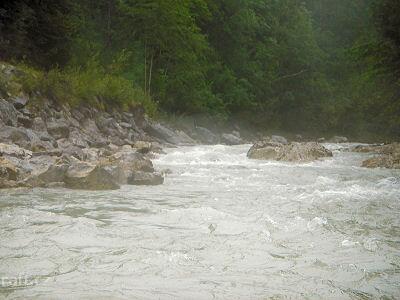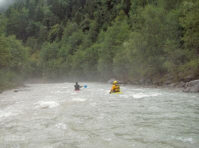 Za vyšší vody (my jsme to jeli v červenci po dešti) se dá nasedat pod soutěskou pod Annabergem. Stýk ...