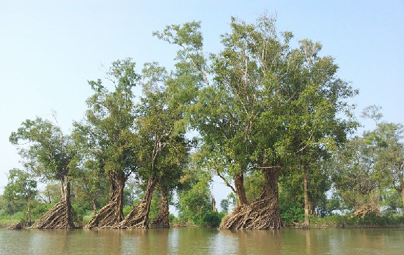 I když voda vypadá na první pohled líně, tak je proud dále od břehu docela silný a jen pár minut po startu vjíždíme do onoho „zaplaveného lesa“, který je sice řídký, ale podívaná je to i tak úchvatná. Tímto okamžikem mizí všechny mé obavy. I když by síla proudu teoreticky mohla v případě převržení lodi člověka uvěznit někde u kořenů stromů, nebezpečí se mi zdá menší než například v zeleném pekle na Ploučnici. I proto, že většina kmenů vyrůstá z míst, kde je hloubka na pohled hodně malá. Dochází mi, že jde v podstatě o zaplavený ostrov. Doprovodná loď podobná místa objíždí a čeká vždy někde pod, takže nás po většinu času ani neruší hluk jejího motoru.