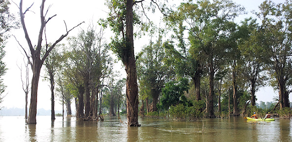 V obou případech se jednalo o tour s průvodcem, organizovanou jednou z několika outdoorových firem, a v obou případech šlo o plavbu „zaplaveným lesem“ na sit on top kajacích. Jedna z možností byla tour z Kratie a druhá, kterou jsem využil, poblíž Stung Treng.