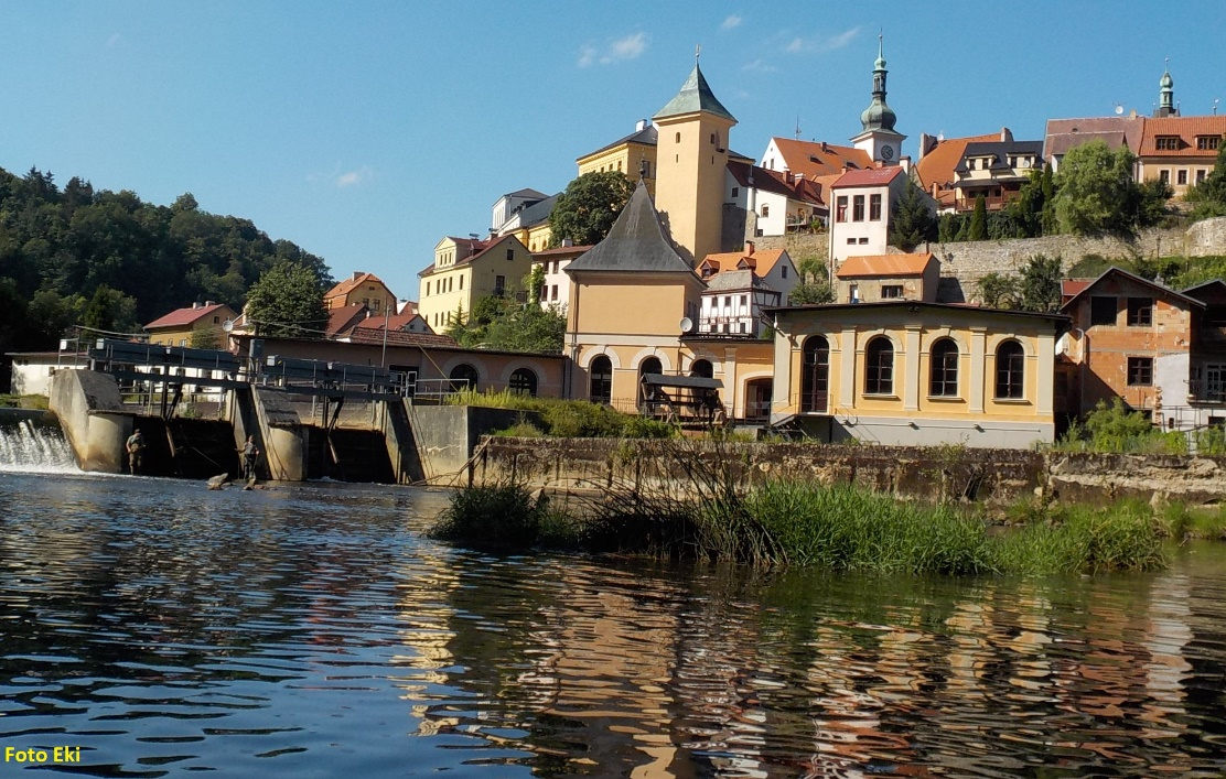 Nakonec výběr vyhrála Ohře. V půlce srpna v pátek po práci nasedám na vlak, který mě vyklopí v Chebu. Vleču Pálavu centrem kolem Špalíčku k mostu na říčním km 241. Ve vysoké navigací nacházím úzkou průrvu rybářského schodištátka. Tou procpu pálavu, sebe s loďákem už hůř. Konečně na řece.
