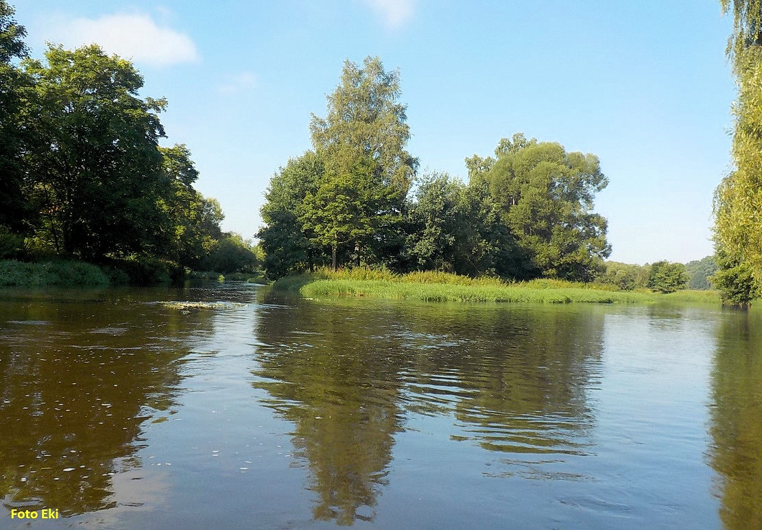 První lodě potkávám až nad jezem v Kynšperku, ale zato jsou jich hnedle celé houfy. Plastové kánoe a rafty. Je kolem desáté, takže mé varování stále platí.