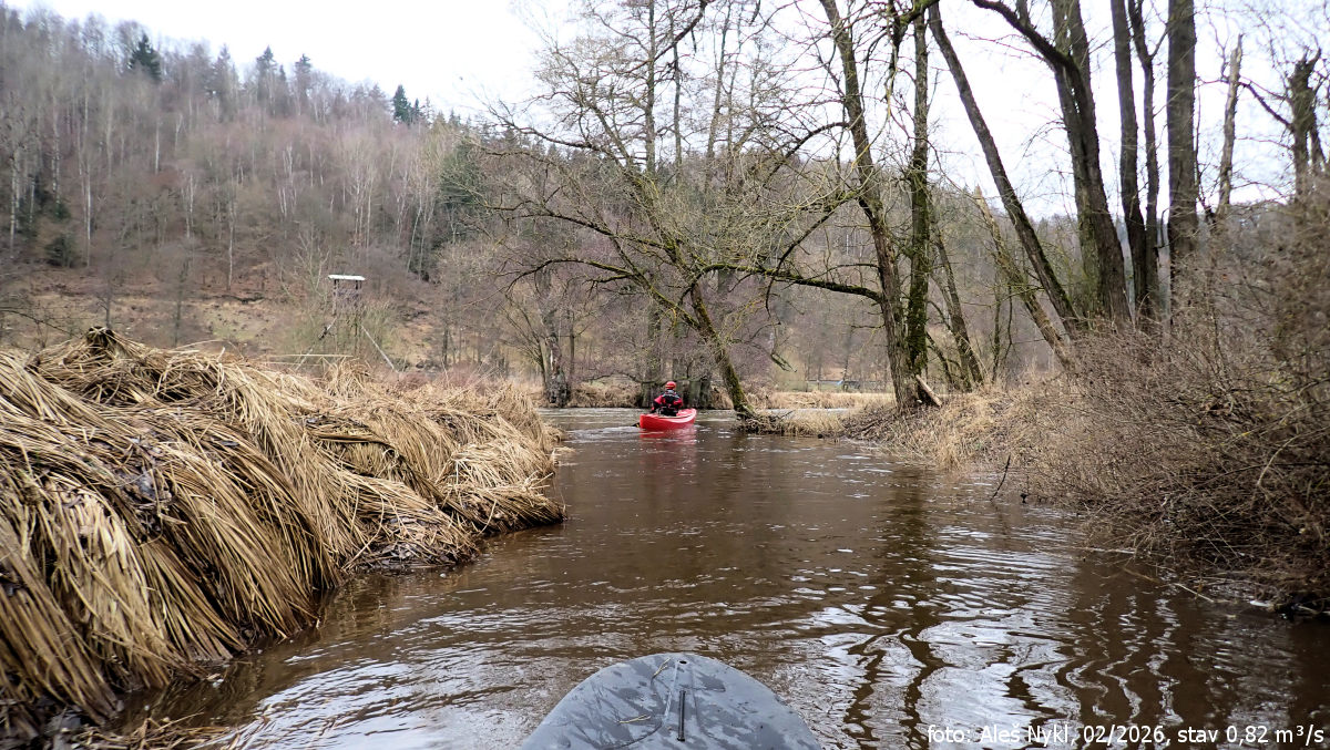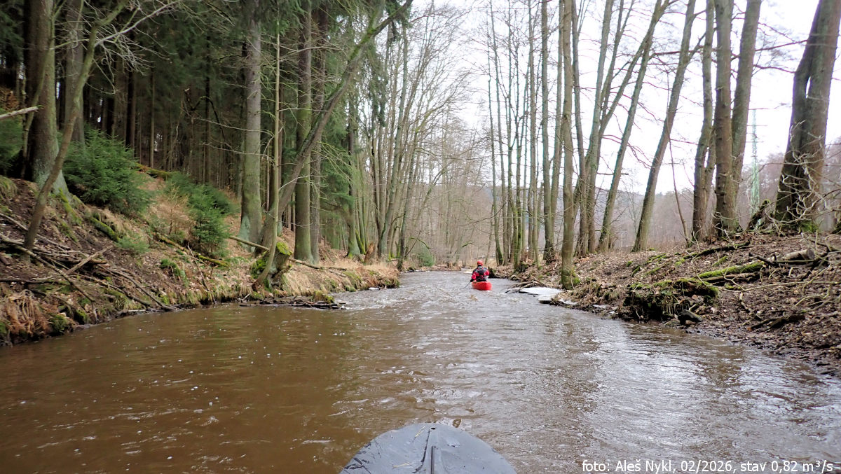 Spousta rychlých meandrů, pěkná kličkovaná, ale kdyby byl alespoň 1 m³/s, bylo by to ještě zábavnější.