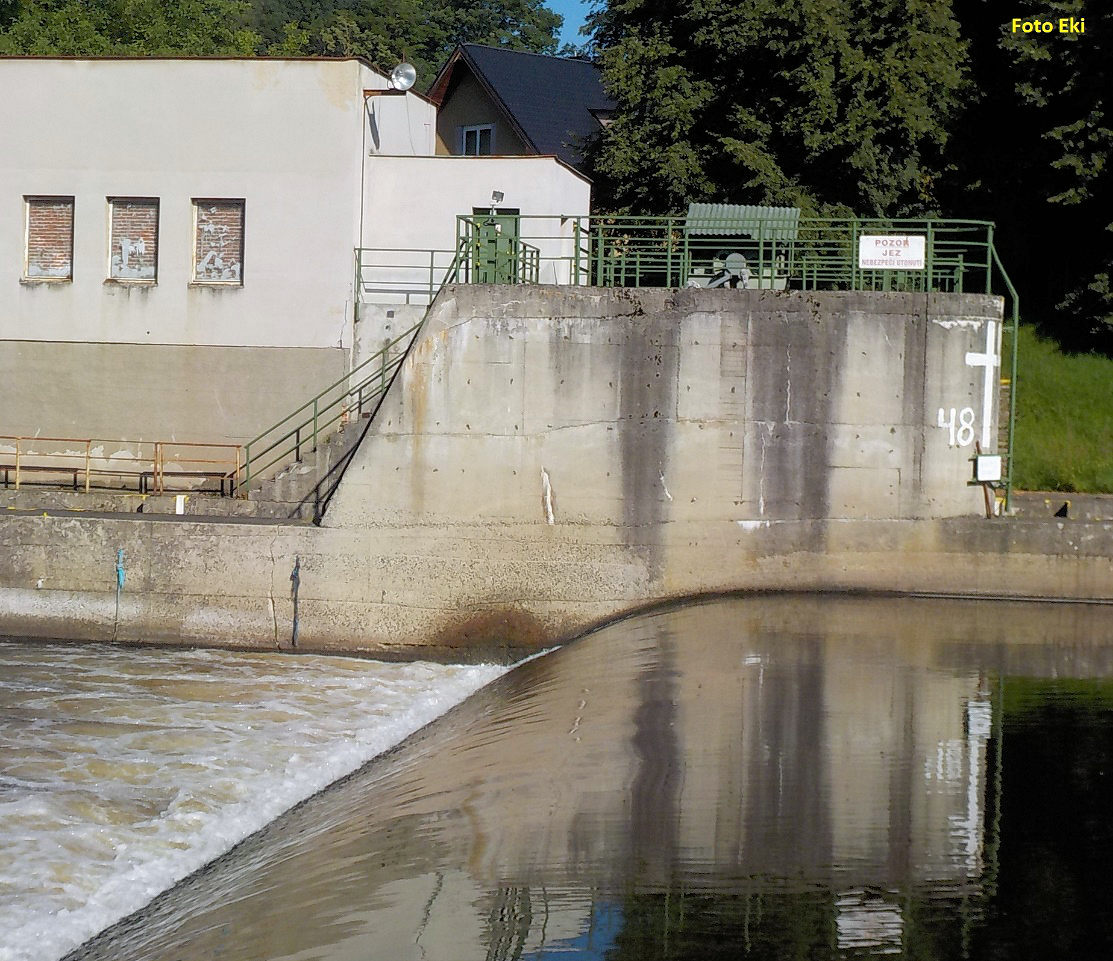 Na betonové budově na pravém břehu u jezu Radošov je namalovaný velký bílý kříž a u něj číslo 48. Je to celkový počet obětí tohoto nebezpečného jezu?