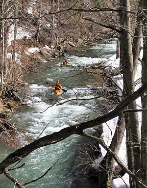 Je druhého dubna a nám začíná den vystřižený z vodáckých snů. Probíráme se na Visalajích v Beskydách do zamračeného rána. Není třeba spěchat. Vzhledem k množství sněhu kolem, čím později vyjedeme, tím víc vody roztaje. Sjedeme na Zlatník, kde se potkáme v hospodě s Kayakteamem z Opavy.