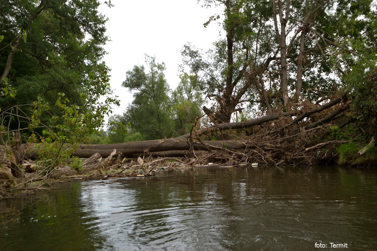 Najednou se nám ta řeka začala moc líbit. Nenudila nás. Ke všemu navíc docela dobře tekla a následovaly jen dva malé stupně v podobě kamenného záhozu, který šel opatrně sjet. Za kempem Suté břehy jsme museli přenést jeden masivní zátaras. Za mostem v Krňovicích jsme nechali za sebou poslední lodě a řeku jsme měli po zbytek plavby pro sebe. Ve čtyři hodiny jsme dojeli do Blešna.