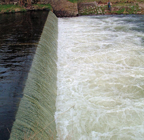 To nám dodalo odvahu a zabrali jsme. Rozjeli jsme se na další schůdek o stopadesát metrů níž. Na břehu a na mostě se objevili první čumilové a koukali na nás s nezastíranou směsí obdivu a údivu. Protože jsme nevěděli, co nás čeká, zavolali jsme na jednoho kluka na břehu: „Kámo, jak to tam vepředu vypadá, jsou tam ňáký jezy?“