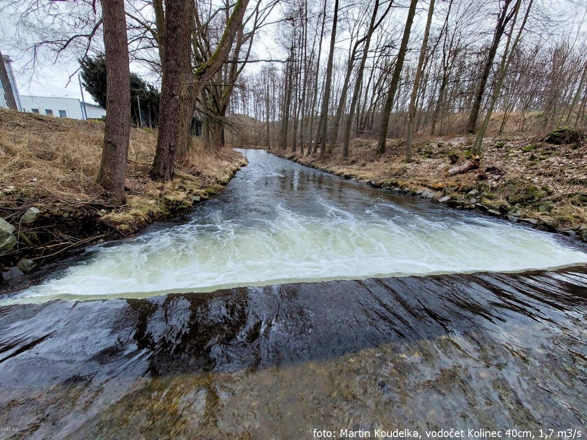 16.4.2023 úsek ústí Radvanického potoka - most u nádraží Kolinec (9km) za stavu 55cm = 5m3. Všechny ...