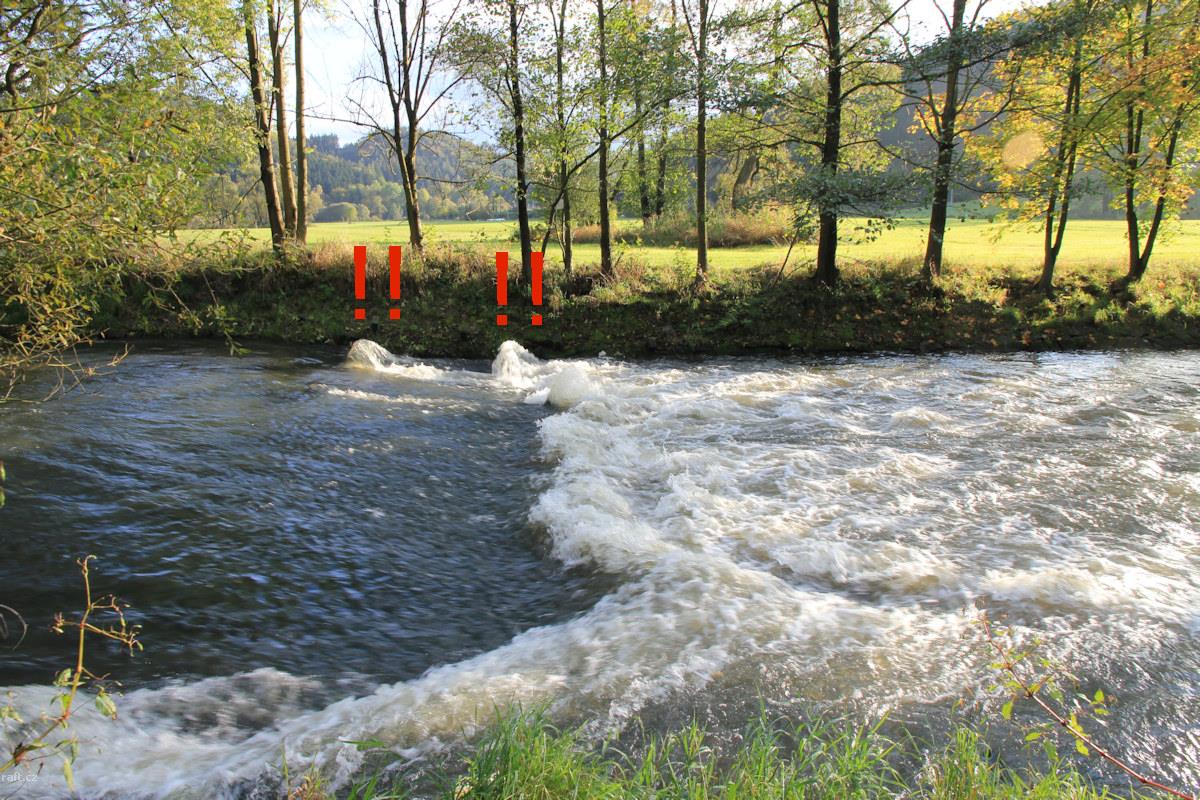 r.km 48,7 provalený jez odspodu - zablokovaný výjezd