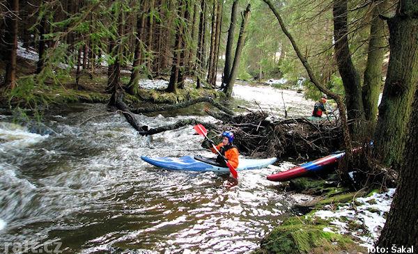 Dnes 18.7. byl padlý strom přes celou řeku asi 400 m před železničním mostem v Borači. Lépe přenést ...